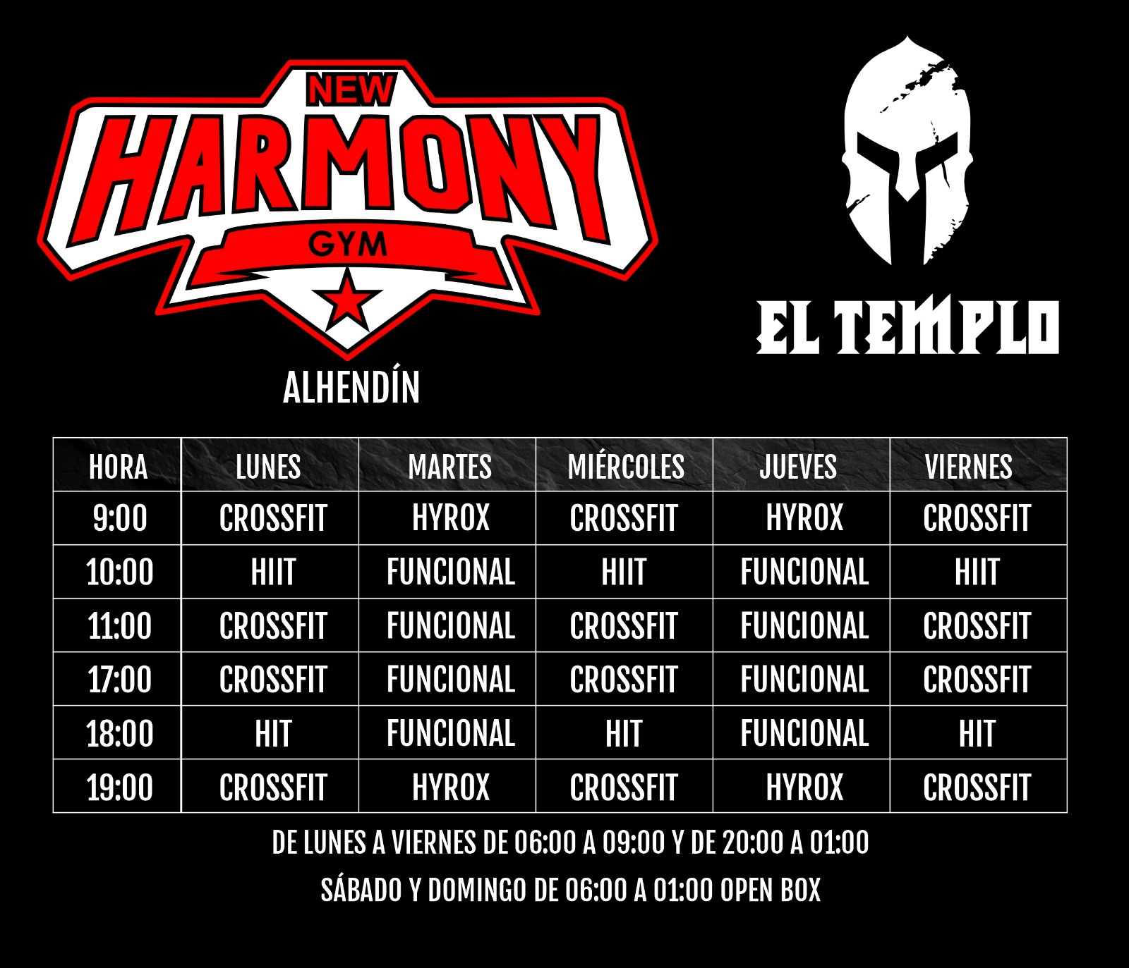 Horarios Gimnasio y Box, Alhendin